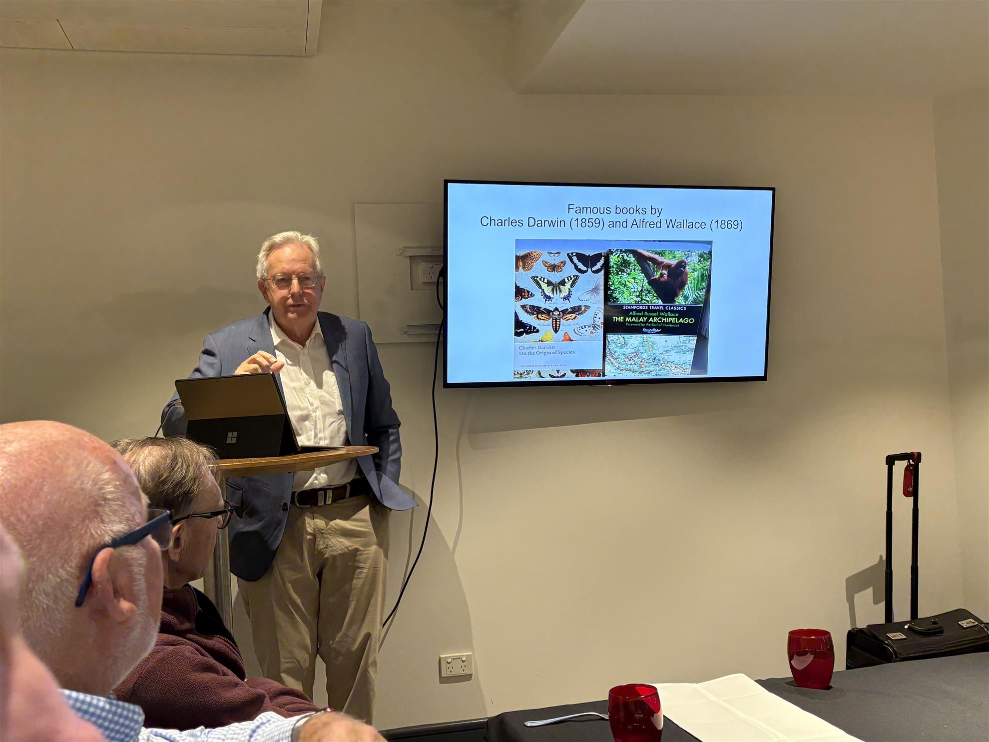 Our guest speaker was Astrida's husband, Emeritus Professor Jim Hone . His. topic - " In the footsteps of Alfred Russell Wallace". A wonderful journey through the history of discovery of the Origin of the Species.